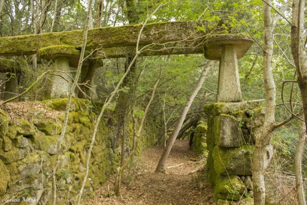 Entre los restos comidos por la exuberante naturaleza que se traga el lugar, podremos admirar hasta media docena de impresionantes casas. Algunas incluso contaban con planta alta y fallado y en ellas podremos ver buenas lareiras, chimeneas, armarios, escaleras, balcones, e incluso observar como estaban distribuidos los espacios en su interior. Junto al núcleo principal se conserva también un viejo molino de agua del que podremos ver su «moa» y un poco más arriba adivinar la «levada» que traía el agua desde un arroyo (Rego da Lomba) situado unos pocos metros más al este del cual se abastecía al pueblo y sus cultivos. No es muy habitual en Galicia encontrar estas construcciones junto a las casas, aquí forma parte de la calle principal.